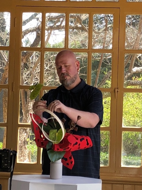 As a practitioner of the Sogetsu-Ryu school of Ikebana, Alex outlined the principles of Ikebana to his audience- simplicity, natural beauty, and harmonising with nature to produce beautiful, vibrant arrangements that accentuate the eccentricities of natural forms. These principles were born out of Buddhist and Shinto philosophy and practices, in which flowers were used as tokens to honour deities and ancestors. Over time, the art from developed in to schools with different rules and practices, that emphasise different elements in their flower arranging.