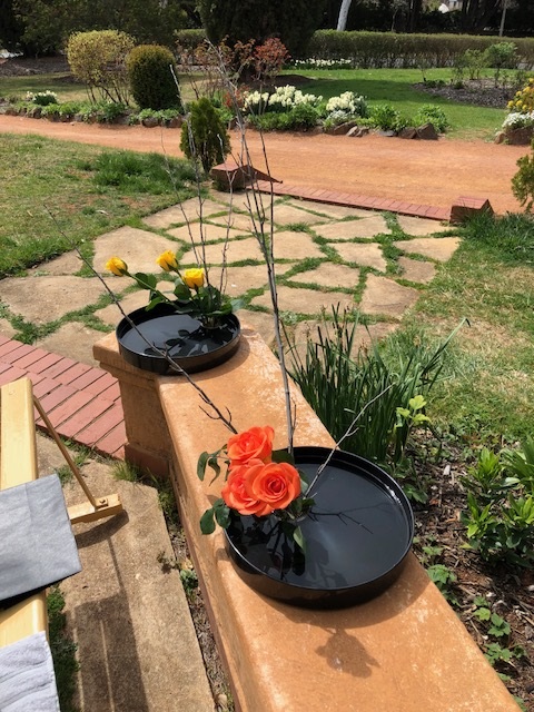 A sunny spring morning at Calthorpes House, with the garden beginning to bloom, was the perfect time for our enthusiastic visitors to learn the art of flower arranging. When one thinks of flower arranging, the image that often comes to mind is Victorian ladies carefully packing dozens of flowers into an ornate vase in a cluttered drawing room. As Alex Evans, of HanaKuma Canberra explained however, flower arranging can be far more creative, philosophical and beautiful than many realise.