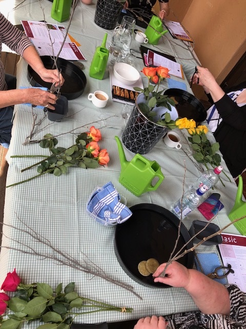 With this history in mind, and with Alex’s demonstration complete, our visitors had a go at their own arrangements- using their new knowledge to select flowers, leaves and stems, and arranging them just so. The results were gorgeous- and our guests went home with their lovely arrangements, and a new appreciation for the Japanese art form, Ikebana.