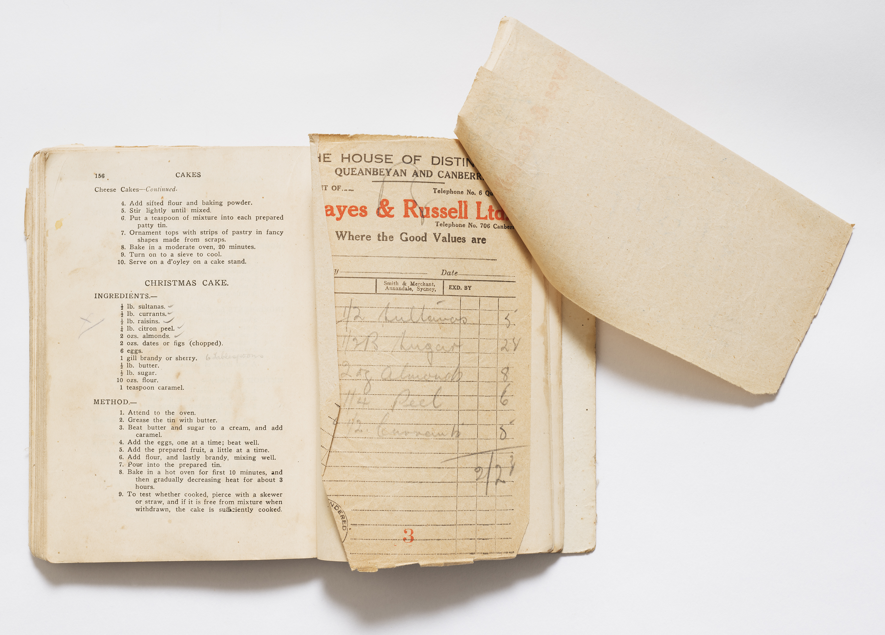 For generations, families prepared jams, cakes, chutneys and pickles from recipes recorded by hand and kept close at home. Many of these dishes were made for Christmas or shared through the year, using ingredients from the garden, the pantry and the local stores of Queanbeyan and Canberra. These recipes survive in the collection today and offer a simple way to bring a little of the past into your kitchen. Try them at home and enjoy a taste of early Canberra cooking.